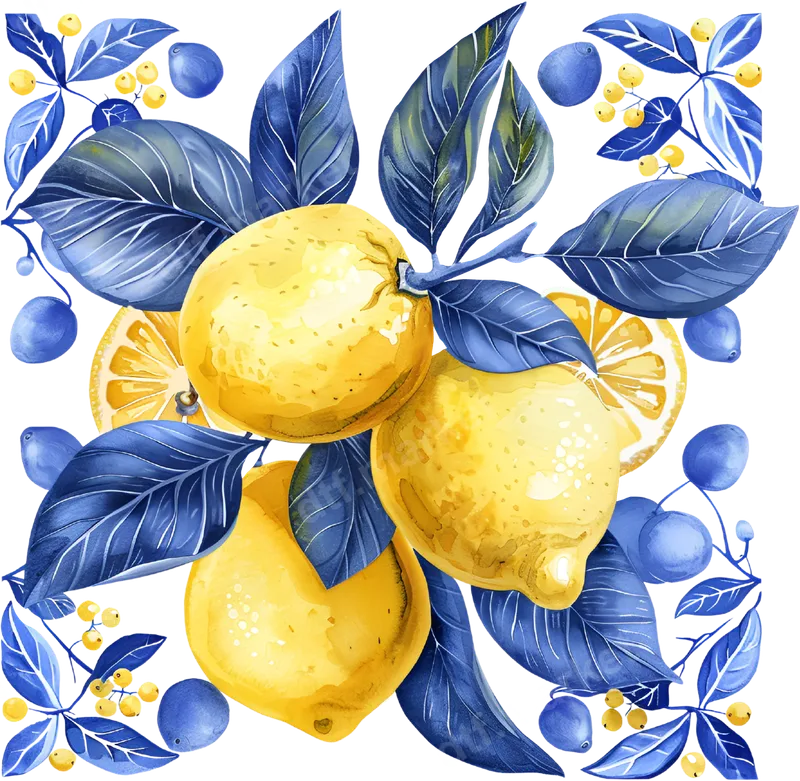Vibrant Lemon & Blue Botanical Watercolor DTF Transfer | Ready to Press Citrus Design