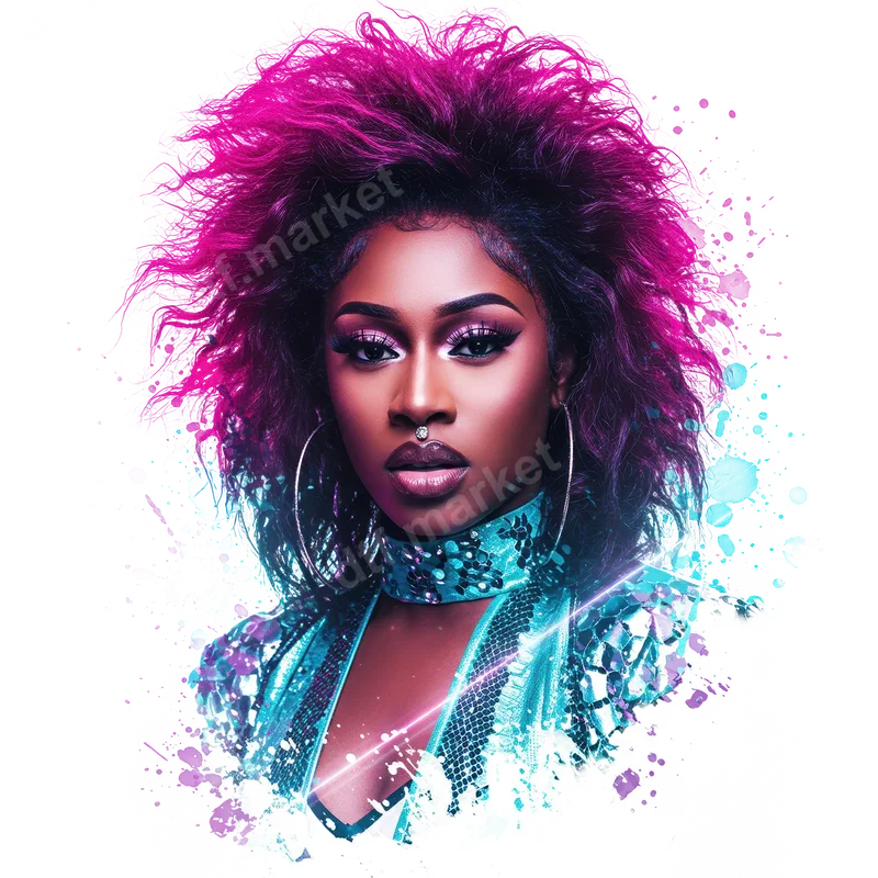 See allUnleash bold style with this captivating DTF transfer featuring a confident woman boasting electrifying magenta hair. Her fierce gaze, dramatic makeup, and shimmering teal outfit with a matching choker exude an edgy, pop-culture vibe. This artistic design is enhanced with vibrant paint splatters, making it a standout ready to press graphic for any garment. This striking heat transfer is perfect for trendsetters, music lovers, and anyone who embraces unique streetwear fashion. Ideal for concerts, festivals, parties, or simply expressing your bold personality in everyday wear. It also makes an exceptional gift for friends or family who appreciate strong, artistic, and modern designs that command attention. Our premium iron on transfer is engineered for seamless application on a wide range of fabrics, including cotton, polyester, and their blends. For best results, apply with a heat press at 300-325°F for 15 seconds with medium pressure. It can also be applied using a household iron for convenience. Enjoy a hassle-free process with no weeding or intricate layering required. Experience superior quality with our direct to film transfer. The inks deliver incredibly vibrant colors and sharp details that resist cracking and fading, ensuring your apparel transfer looks fantastic wash after wash. Crafted on professional-grade DTF film with a strong, flexible adhesive, this shirt design feels soft to the touch and provides lasting durability for your custom creations.