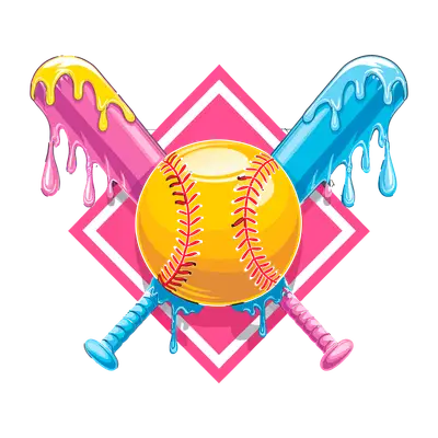 Vibrant Melting Softball & Crossed Bats DTF Heat Transfer