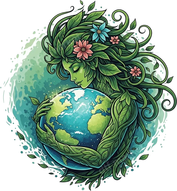Vibrant Mother Earth Gaia Holding Planet DTF Heat Transfer Design