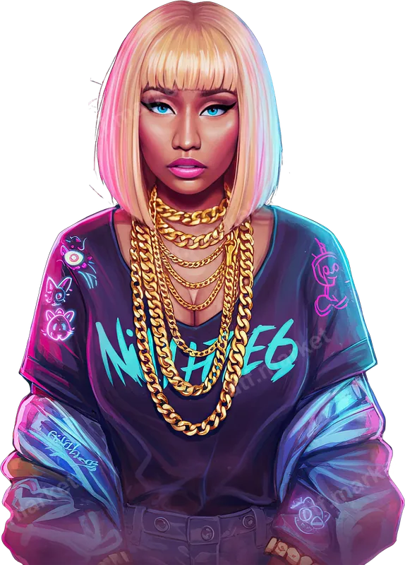 Vibrant Nicki Minaj Style DTF Transfer with Neon & Gold Chains