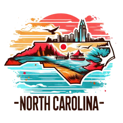 Vibrant North Carolina State DTF Transfer - Mountains, Ocean & City Skyline