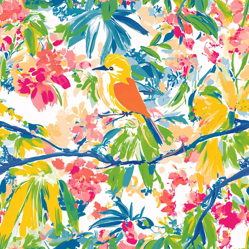 Vibrant Painterly Bird & Tropical Floral DTF Transfer Design
