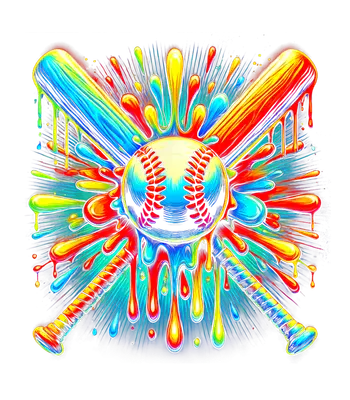 Vibrant Splatter Paint Baseball & Bats DTF Transfer Design