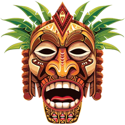 Vibrant Tiki Mask DTF Transfer | Tropical Hawaiian Heat Press Design