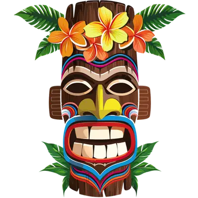 Vibrant Tiki Mask DTF Transfer with Tropical Flowers & Leaves