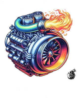 Vibrant Turbo Engine with Flames DTF Transfer | Racing Apparel