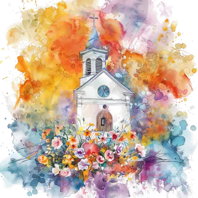 Vibrant Watercolor Church & Flowers DTF Transfer | Ready to Press