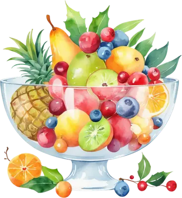 Vibrant Watercolor Fruit Bowl DTF Transfer - Fresh Produce Design