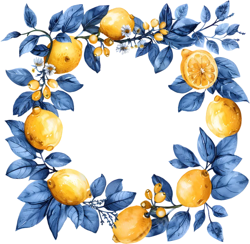 Vibrant Watercolor Lemon & Blue Leaf Wreath DTF Transfer