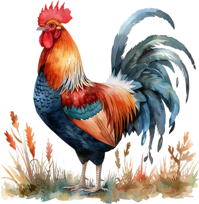 Vibrant Watercolor Rooster DTF Transfer - Farm Animal Heat Press Design