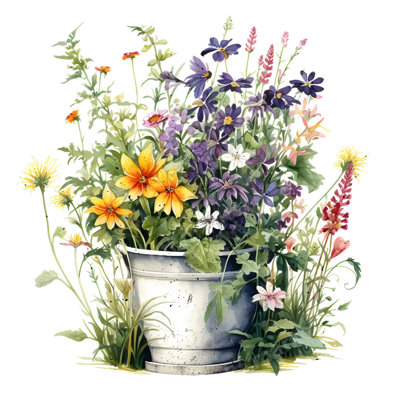Vibrant Watercolor Wildflowers in Pot DTF Transfer Design