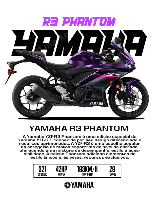 Vibrant Yamaha R3 Phantom Motorcycle DTF Transfer | Ready to Press