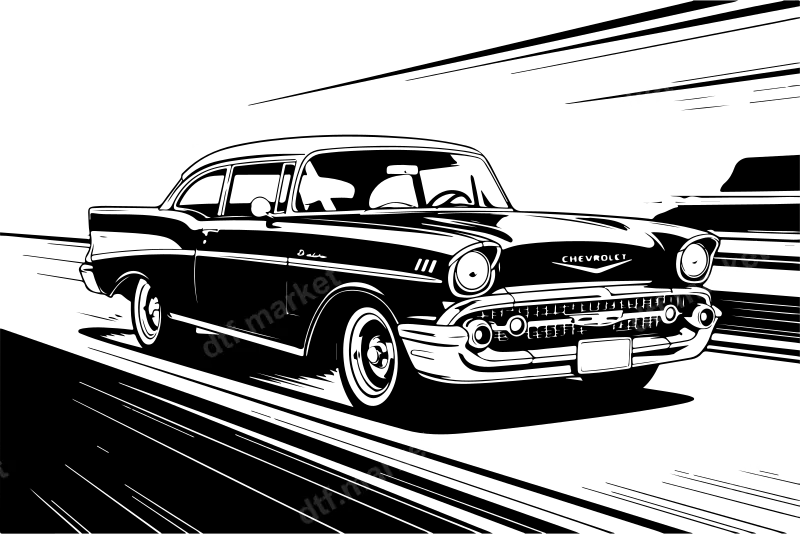 See allCapture timeless American automotive heritage with this striking DTF transfer featuring a sleek, black and white 1957 Chevrolet Bel Air. This iconic classic car design is rendered with dynamic speed lines, giving it a powerful, nostalgic, and energetic vibe. It's a ready to press transfer that brings the spirit of the open road directly to your apparel. Celebrate the golden age of motoring with this distinctive heat press design, perfect for making a statement. This vintage car iron on decal is perfect for classic car enthusiasts, mechanics, hot rodders, or anyone who appreciates iconic American design. It makes an excellent gift for Father's Day, birthdays, or for personalizing gear for car shows, cruising events, or garage hangouts. Customizing a casual tee or work uniform, this apparel transfer will impress fans of retro style and automotive history. Applying this ready to press transfer is simple and efficient. It adheres flawlessly to cotton, polyester, and various blends. For best results, use a heat press at 300-325°F for 15 seconds with medium pressure, then peel cold. A household iron can also be used. Unlike traditional vinyl transfer methods, there's no weeding required, saving valuable time and effort on your custom transfer projects. Crafted with professional-grade DTF film, our transfers boast exceptional quality. The design features crisp details, incredible durability, and superior crack resistance, ensuring your design looks fantastic wash after wash. The soft-to-touch finish means comfortable wear, while the strong adhesive ensures a long-lasting bond. Elevate your apparel with a premium direct to film transfer that stands out from the crowd.