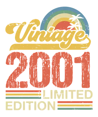 See allThis design features a vibrant, distressed "Vintage 2001 Limited Edition" graphic, capturing a nostalgic, retro aesthetic. Adorned with a classic sunset-style rainbow and subtle palm tree silhouettes, it evokes a laid-back, throwback vibe. This premium DTF transfer is an ideal way to celebrate a special birth year or event from 2001, making any garment instantly unique. It's a completely ready to press design, eliminating the need for complex preparation. This eye-catching design is perfect for anyone celebrating a 23rd birthday (in 2024) or a significant anniversary from 2001. It's an excellent gift idea for millennials, retro enthusiasts, or small businesses creating custom apparel for birth-year themed events. Use this versatile iron on transfer to create personalized shirts for friends, family, or even to add a unique piece to your own wardrobe. The heat transfer design is sure to spark conversations and show off timeless style. Applying this heat press transfer is simple and efficient. It works beautifully on a wide range of fabrics including cotton, polyester, cotton-poly blends, and even nylon. Achieve professional results with a heat press (recommended at 300-325°F for 15 seconds with medium pressure) or a standard household iron. Say goodbye to tedious weeding; simply peel and press! It's perfect for custom t-shirts, cozy hoodies, stylish sweatshirts, functional tote bags, pillow covers, baby onesies, aprons, and denim jackets. For lasting durability, wash garments inside out and tumble dry low. Our ready to press transfer ensures vibrant, full-color printing with exceptional detail, bringing the vintage aesthetic to life. You'll love its crack-resistant finish and soft-to-the-touch feel, without the heavy or rigid sensation often associated with vinyl. Every direct to film transfer is meticulously printed on premium DTF film, engineered with a strong adhesive backing to guarantee professional-grade application and impressive longevity on your chosen apparel or accessory.