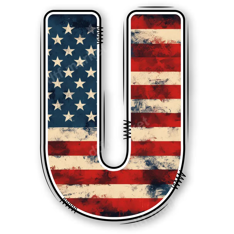 Vintage American Flag Letter U DTF Transfer - Patriotic Initial Ready to Press