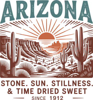 See allThis rustic "ARIZONA" DTF transfer beautifully captures the serene beauty of the Southwest desert. Featuring a classic woodcut-style illustration of majestic saguaro cacti and a radiant sun over distant mesas, this design evokes a timeless sense of peace and natural grandeur. The distressed typography and accompanying motto "STONE. SUN. STILLNESS. & TIME DRIED SWEET. SINCE 1912" give it an authentic vintage feel. This "ready to press" design brings the spirit of the Grand Canyon State to any garment. Perfect for Arizona natives, proud residents, desert adventurers, or anyone cherishing the unique charm of the American Southwest. This excellent "iron on transfer" is ideal for souvenir shirts after a road trip, a thoughtful gift, or for small businesses creating unique apparel. Celebrate state pride, commemorate a vacation, or simply express a love for wide-open spaces and sunny skies. Applying this "heat press transfer" is quick and easy on cotton, polyester, cotton-poly blends, and even nylon. Press with a heat press (300-325°F, 15 seconds, medium pressure) or a household iron. No weeding required – just peel and press! Create stunning "custom t-shirts", hoodies, tote bags, pillow covers, and denim jackets. For lasting durability, wash garments inside out and tumble dry low. Our "ready to press transfer" delivers vibrant, full-color printing with exceptional fine detail. Experience a soft, crack-resistant finish without the heavy feel of vinyl. Each "direct to film transfer" is meticulously printed on premium DTF film with a strong adhesive backing to guarantee professional, long-lasting results every time.