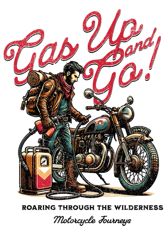 Vintage Biker DTF Transfer "Gas Up & Go" Motorcycle Adventure