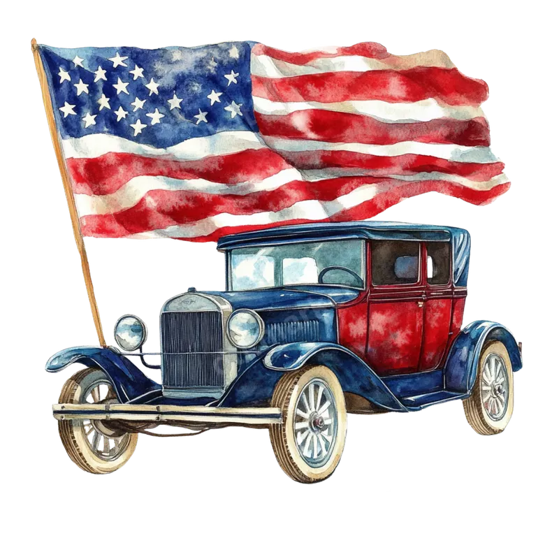 Vintage Car American Flag DTF Transfer - Classic Patriotic Auto Design