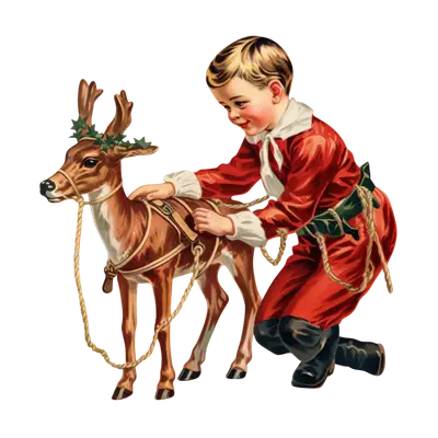 Vintage Christmas Boy & Reindeer DTF Transfer