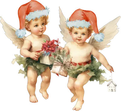 Vintage Christmas Cherubs DTF Transfer with Santa Hats & Gifts