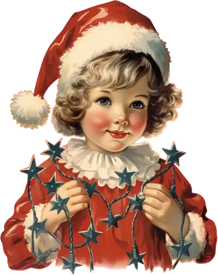 Vintage Christmas Child with Star Lights DTF Transfer