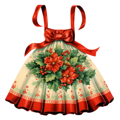 Vintage Christmas Dress Poinsettia Holly DTF Transfer