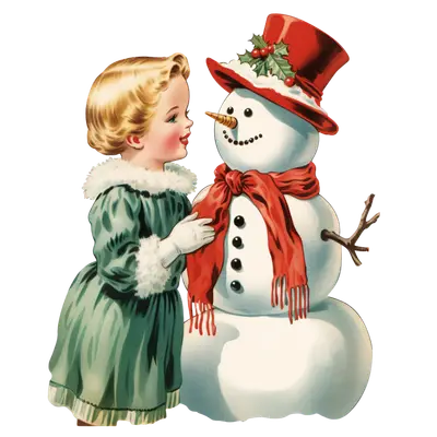 Vintage Christmas Girl & Snowman DTF Transfer - Retro Holiday Design