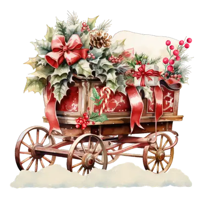 Vintage Christmas Wagon DTF Transfer - Holly & Berries Design