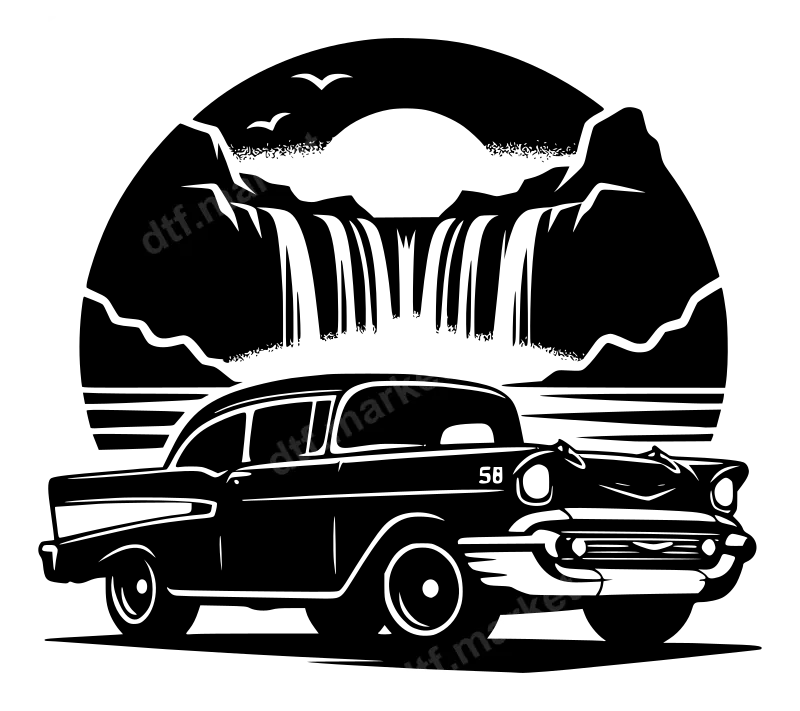 Vintage Classic Car Waterfall DTF Transfer | Ready to Press Retro Americana Design