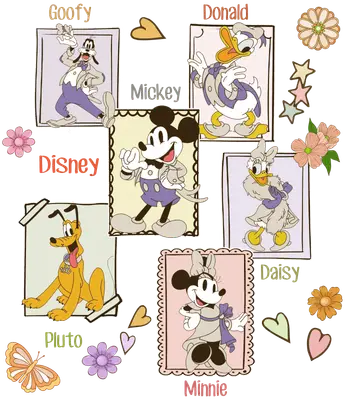 See allStep back in time with this enchanting vintage Disney Friends DTF transfer, celebrating the timeless charm of Mickey Mouse, Minnie Mouse, Donald Duck, Daisy Duck, Goofy, and Pluto. Each beloved character is beautifully rendered in a classic, slightly muted palette, presented within charming framed portraits, scattered amongst whimsical flowers, hearts, and stars. This delightful design captures a nostalgic vibe, making it a perfect DTF transfer for anyone who cherishes the golden era of Disney animation. It arrives ready to press, bringing instant magic to your chosen items. This adorable iron on transfer is ideal for Disney enthusiasts of all ages, from parents creating matching family shirts for a magical vacation to small business owners crafting unique merchandise. It's perfect for celebrating birthdays, baby showers, or simply adding a touch of classic cartoon joy to everyday wear. Gift this charming heat transfer design to a Disney collector, a friend who loves vintage aesthetics, or use it to personalize apparel for your next family gathering or themed event. Applying this heat press transfer is a breeze, compatible with a wide range of fabrics including cotton, polyester, cotton-poly blends, and even nylon. Achieve professional results with a heat press (300-325°F for 15 seconds at medium pressure) or a household iron. There’s no weeding involved – simply peel and press! Create stunning custom t-shirts, cozy hoodies, stylish sweatshirts, practical tote bags, adorable baby onesies, or even update a denim jacket. For lasting durability, always wash your finished garment inside out and tumble dry on low heat. Experience exceptional quality with this ready to press transfer, boasting vibrant, full-color printing and remarkable fine detail. The design is crack-resistant and soft to the touch, ensuring a comfortable wear without the heavy feel often associated with vinyl. Every direct to film transfer is produced on premium DTF film with a robust adhesive backing, guaranteeing a professional and long-lasting application that brings your favorite Disney characters to life on any garment.
