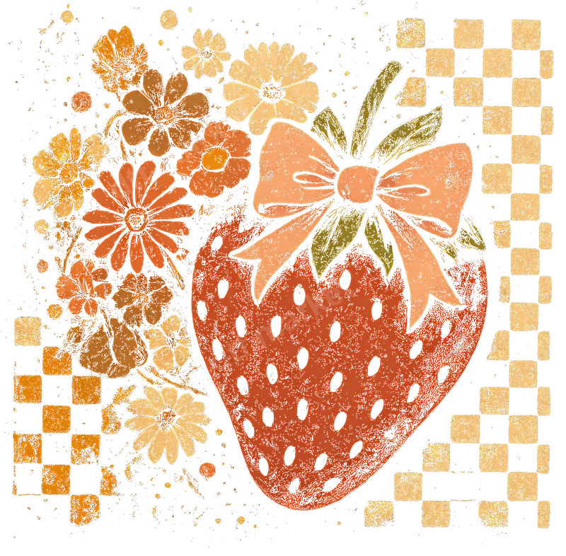 See allThis charming, distressed strawberry DTF transfer features a delicate bow, surrounded by retro-inspired flowers in warm, earthy tones. A subtly faded checkerboard pattern completes the background, giving the design a wonderfully vintage and rustic aesthetic. This unique ready to press transfer is an instant classic, perfect for those who appreciate nostalgia and bohemian flair, easily added to your chosen garments. This versatile design is ideal for crafters, small business owners, and anyone looking to infuse their wardrobe or accessories with a cozy, autumnal, or retro vibe. It's perfect for fall festivals, farmers market outings, or simply adding personality to everyday wear. Use this heat transfer for custom gifts for friends and family who love vintage aesthetics, cottagecore styles, or unique apparel. It also makes a fantastic iron on for matching family shirts for pumpkin patch visits or autumn gatherings. Applying this ready to press transfer is incredibly straightforward. Our high-quality DTF transfers work beautifully on cotton, polyester, and various blends. For best results, use a heat press set between 300-325°F for 15 seconds with medium pressure. A household iron can also achieve great results with even, firm pressure. Say goodbye to tedious weeding; this heat press design is ready to apply right out of the package. Experience superior quality with our premium direct to film transfers. Crafted with vibrant, fade-resistant inks, your design will maintain its rich, warm colors wash after wash. These transfers are engineered to be crack-resistant and offer a soft, smooth feel, ensuring maximum comfort and durability on any garment. Our professional-grade DTF film boasts strong adhesive, guaranteeing a long-lasting bond to your fabric for a professional finish.
