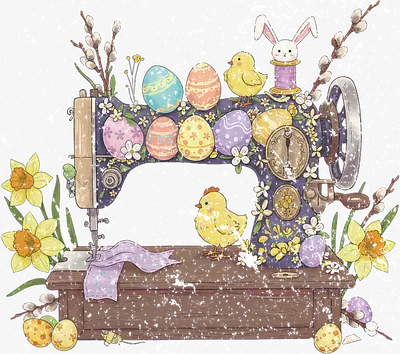 Vintage Easter Sewing Machine DTF Transfer | Ready to Press Chicks & Eggs