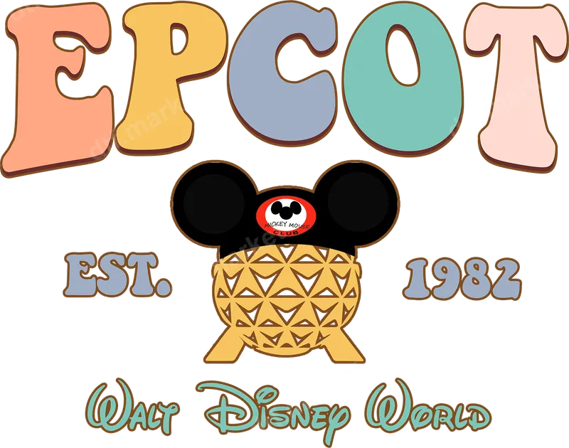 See allThe design features "EPCOT" in a bold, retro font with muted pastel colors (peach, gold, blue, teal, pink), giving it a distinct 70s-80s aesthetic. Below, the text "EST. 1982" marks the park's opening year, flanking an iconic Mickey Mouse ears hat adorned with the "Mickey Mouse Club" logo, sitting atop the geodesic sphere of Spaceship Earth. This vibrant, high-quality DTF transfer brings a touch of nostalgic magic, ready to press onto your favorite apparel. This retro Epcot design is perfect for Disney enthusiasts, families planning a Walt Disney World vacation, or anyone who cherishes the park's early years. It makes an excellent gift for Disney-bound friends, Epcot collectors, or as a fun way to create matching outfits for group trips. Ideal for theme park visits, family reunions, or simply showcasing your love for vintage Disney, this heat press transfer adds a unique, personalized touch to any garment. Applying this iron on transfer is quick and easy, suitable for a wide range of fabrics including cotton, polyester, and various blends. For best results, use a heat press at 300-325°F for 15 seconds with medium pressure. It can also be applied with a household iron, following included instructions. Forget tedious weeding; this ready to press transfer simplifies customization, allowing you to create professional-looking shirts in minutes. Crafted with professional-grade DTF film, this direct to film transfer ensures vibrant colors that pop and a soft-to-touch feel on any fabric. The advanced adhesive guarantees exceptional durability, making your custom shirt design resistant to cracking, peeling, and fading through countless washes. Enjoy a high-quality apparel transfer that offers both stunning visuals and long-lasting wear, perfect for creating memorable pieces.
