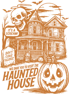 See allStep into the spooky season with our captivating Vintage Haunted House DTF transfer! This intricate design features a classic, eerie haunted mansion under a full moon, surrounded by flying bats, a grinning skull exclaiming "IT'S A SCREAM!", a tombstone warning "DON'T COME ALONE!", and a mischievous jack-o'-lantern. The vintage woodcut-style artwork in a warm, earthy tone on a dark background evokes a nostalgic Halloween vibe, making it a perfect ready to press design for adding a touch of classic horror to your apparel. This iron on transfer is ideal for anyone who loves Halloween, classic horror aesthetics, or enjoys creating unique holiday apparel. Perfect for small businesses preparing for fall craft fairs, crafters making custom shirts for costume parties, or families designing matching spooky outfits for trick-or-treating. It's a fantastic heat transfer design for personalizing gifts or adding a distinctive flair to your own wardrobe during the festive October season. Applying this heat press transfer is a breeze! It works beautifully on a wide variety of fabrics including cotton, polyester, cotton-poly blends, and even nylon. For best results, use a heat press at 300-325°F for 15 seconds with medium pressure, or apply with a household iron following our instructions. There's no tedious weeding required—simply peel and press! Create stunning custom t-shirts, cozy hoodies, stylish tote bags, unique pillow covers, or fun denim jackets. For long-lasting vibrancy, wash your finished garment inside out and tumble dry on low. Our ready to press transfer offers exceptional quality with vibrant, full-color printing and incredibly fine detail, ensuring your design truly pops. It's crack-resistant and boasts a soft feel, unlike heavy vinyl transfers. Each direct to film transfer is printed on premium DTF film using high-quality inks, backed by a strong adhesive for a professional, durable finish that stands up to wear and washing, ensuring your spooky creation lasts for many Halloweens to come.