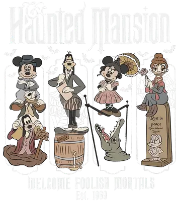 Vintage Haunted Mansion Disney Characters DTF Transfer