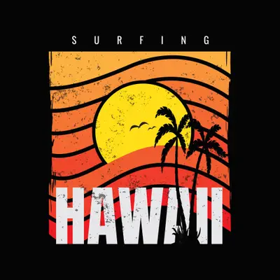 Vintage Hawaii Surfing Sunset DTF Transfer | Palm Trees Beach Retro