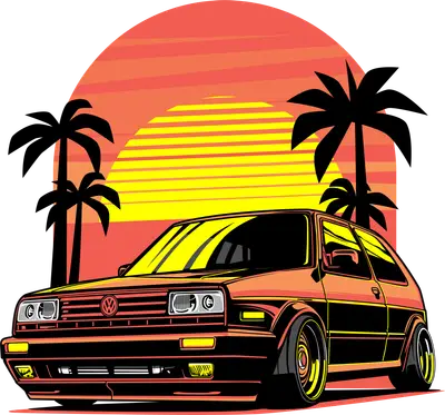 Vintage Hot Hatch Sunset DTF Transfer | Retro Car Beach Design