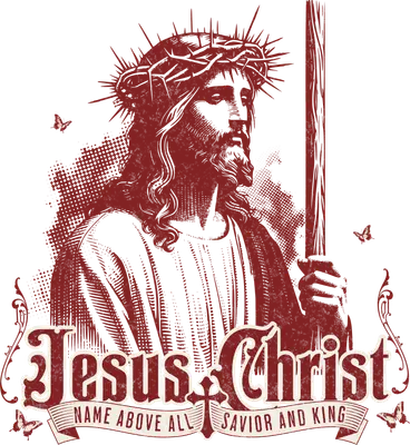 This powerful Jesus Christ DTF transfer features a vintage-distressed portrait of Jesus wearing the crown of thorns, holding a shepherd's staff. Ornate scrollwork frames the inspiring text "Jesus Christ Name Above All Savior and King," with delicate butterflies adding a touch of grace. The rugged, old-world style makes this a perfect ready to press design for expressing profound faith and devotion and is ideal for both personal projects and small business apparel lines. This inspiring design is perfect for Christians, church groups, youth ministries, and anyone seeking to express their spiritual beliefs. It makes an excellent iron on transfer gift for Easter, Confirmation, Baptism, or simply as an everyday statement of faith. Small t-shirt businesses and Etsy sellers can easily incorporate this meaningful heat transfer design into their apparel lines for unique custom creations, offering high-quality religious apparel to their customers. Applying this heat press transfer is effortless, suitable for cotton, polyester, cotton-poly blends, and even nylon fabrics. Achieve professional results with a heat press (300-325°F for 15 seconds) or a household iron. No weeding or layering is required – just peel and press! Create stunning custom t-shirts, hoodies, sweatshirts, tote bags, and denim jackets. For long-lasting vibrancy, wash garments inside out and tumble dry on low. Our ready to press transfer boasts vibrant, full-color printing with exceptional fine detail and a soft, crack-resistant finish that feels lightweight, not heavy like traditional vinyl. Each direct to film transfer is produced on premium DTF film with a robust adhesive backing, ensuring professional-grade results that stand the test of time on all your apparel and accessory projects.