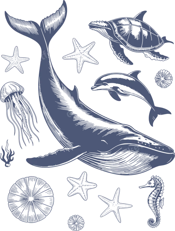 Vintage Ocean Marine Life DTF Transfer | Whale Dolphin Seahorse Design