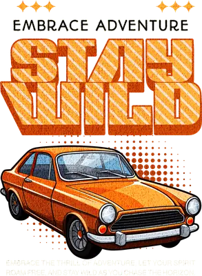 See allThis captivating DTF transfer features a vibrant, retro-inspired orange classic car, ready for the open road. Boldly declaring 'STAY WILD' in a distressed, striped font, accompanied by 'EMBRACE ADVENTURE', this design embodies the spirit of freedom and exploration. The overall aesthetic has a nostalgic, vintage feel, perfect for those who cherish classic automobiles and the thrill of discovery. This ready to press design is a statement piece for anyone drawn to the call of the wild and the beauty of timeless vehicles. This heat transfer design is ideal for classic car enthusiasts, road trip adventurers, and anyone with a love for vintage style and the great outdoors. It makes an excellent gift for Father's Day, birthdays for car lovers, or as a treat for yourself to express your passion. Small t-shirt businesses and Etsy sellers specializing in retro apparel will find this iron on transfer a perfect addition to their unique collections, appealing to customers seeking expressive, high-quality designs. Applying this heat press transfer is simple and efficient. It works beautifully on a wide range of materials, including cotton, polyester, and cotton-poly blends, and even nylon, making it incredibly versatile. For best results, use a heat press at 300-325°F for 15 seconds with medium pressure, or follow instructions for a household iron. There's no tedious weeding required – just peel and press! Create stunning custom t-shirts, cozy hoodies, stylish tote bags, or personalized denim jackets with ease. For lasting durability, wash garments inside out and tumble dry on low heat. Our ready to press transfer guarantees exceptional quality with vibrant, full-color printing and intricate details that truly stand out. Enjoy a soft, smooth finish that's crack-resistant, ensuring your apparel feels comfortable without the heavy feel of traditional vinyl. Each direct to film transfer is meticulously printed on premium DTF film, engineered with a strong adhesive backing to deliver professional, long-lasting results that will impress every time.