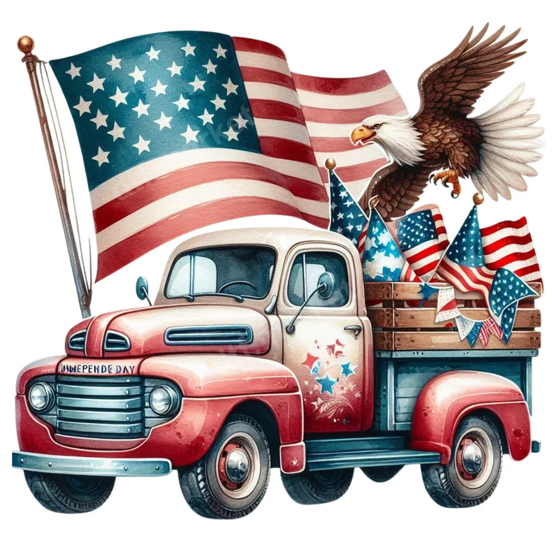 Vintage Patriotic Truck American Flag Bald Eagle DTF Transfer