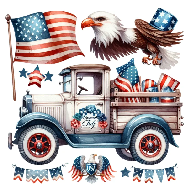 Vintage Patriotic Truck & Eagle DTF Transfer | 4th of July Americana Design