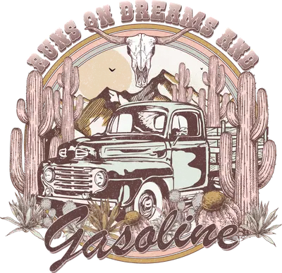 Vintage Pickup Truck Desert DTF Transfer | Runs On Dreams & Gasoline
