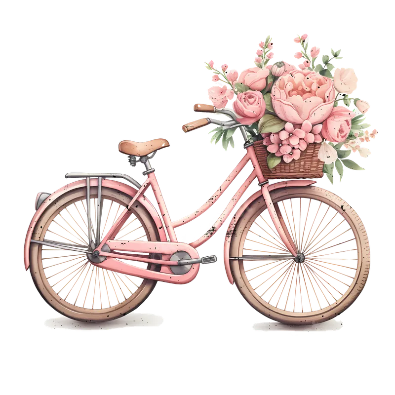 Vintage Pink Bike Floral Basket DTF Transfer Design