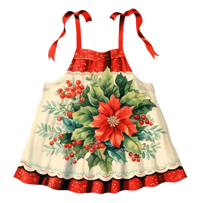 Vintage Poinsettia Christmas Apron DTF Transfer | Holly & Berries