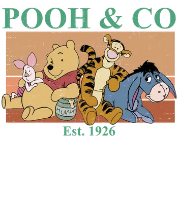 See allThis delightful design showcases the beloved classic Winnie the Pooh characters: Pooh Bear holding his honey pot, Piglet, Tigger, and Eeyore, all lounging together. Above them, "POOH & CO" is displayed in a distressed green font, with "Est. 1926" below the characters, also in green. The background features distressed horizontal stripes in muted orange and brown tones, lending a charming, aged, retro look. This **DTF transfer** perfectly captures a nostalgic, cozy, and timeless feel, making it a delightful **ready to press** design for any Pooh enthusiast. This vintage Pooh & Co design is perfect for families, Disney lovers, crafters, small t-shirt businesses, and anyone seeking a touch of childhood nostalgia. It makes an excellent gift for birthdays, baby showers, or just because. Use this **iron on transfer** to create unique apparel for family vacations, themed parties, or everyday wear. It’s also ideal for Etsy sellers or boutique owners looking to offer charming, high-quality **heat transfer design** options to their customers. Applying this **heat press transfer** is a breeze! It works beautifully on a wide variety of materials, including cotton, polyester, cotton-poly blends, and even nylon. For best results, use a heat press at 300-325°F for 15 seconds with medium pressure. A household iron can also be used with care. There’s no weeding required—simply peel the film and press! Perfect for custom t-shirts, hoodies, sweatshirts, tote bags, pillow covers, baby onesies, aprons, and denim jackets. To ensure lasting durability, wash garments inside out and tumble dry low. Experience superior quality with this **ready to press transfer**. It features vibrant, full-color printing with incredibly fine detail that brings these classic characters to life. The transfers are crack-resistant and soft to the touch, avoiding the heavy, stiff feel often associated with vinyl. Each **direct to film transfer** is printed on premium DTF film with a strong adhesive backing, ensuring professional-looking results that stand the test of time, wash after wash.