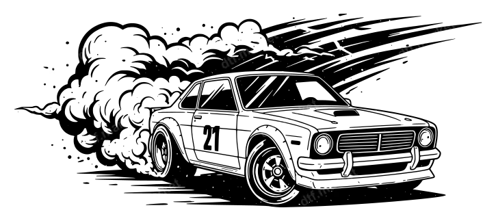 Vintage Racing Car Drift Burnout DTF Transfer Design
