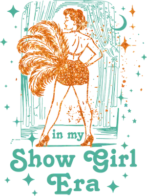See allStep into the spotlight with our captivating 'In My Show Girl Era' DTF transfer. This vibrant design features a confident, vintage-inspired showgirl adorned with a sparkling feathered fan and an equally dazzling outfit. Rendered in a stunning combination of teal outlines and glittering orange textures, it evokes a sense of retro glamour and empowered self-expression. This premium direct to film transfer is perfect for those ready to shine and declare their current fabulous phase. This unique heat press design is ideal for anyone embracing their confidence, celebrating a personal milestone, or simply loving the glamorous aesthetic of a bygone era. Perfect for women's empowerment groups, bachelorette parties, dance teams, or even small boutique owners and Etsy sellers looking to add a touch of vintage flair to their apparel line. It makes an excellent iron on transfer gift for friends and family who embody the 'main character energy' trend. Applying this stunning heat press transfer is effortless, making it perfect for both crafting enthusiasts and professional apparel decorators. It adheres beautifully to a wide range of materials including cotton, polyester, cotton-poly blends, and even nylon. For best results, use a heat press at 300-325°F for 15 seconds with medium pressure, or apply with a household iron. Enjoy the convenience of a ready to press design – no weeding or complex steps required! Transform custom t-shirts, hoodies, tote bags, denim jackets, and even pillow covers into wearable art. For lasting vibrancy, wash inside out and tumble dry low. Our high-quality ready to press transfer ensures exceptional results with vibrant, full-color printing and remarkable fine detail. You'll love the crack-resistant durability and soft-to-the-touch feel, completely free from the heavy, stiff texture often associated with vinyl transfers. Each direct to film transfer is meticulously printed on premium DTF film with a strong, reliable adhesive backing, guaranteeing a professional-grade finish for all your custom apparel and accessory projects.