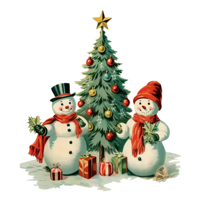 Vintage Snowman Christmas Tree Holiday Presents DTF Transfer